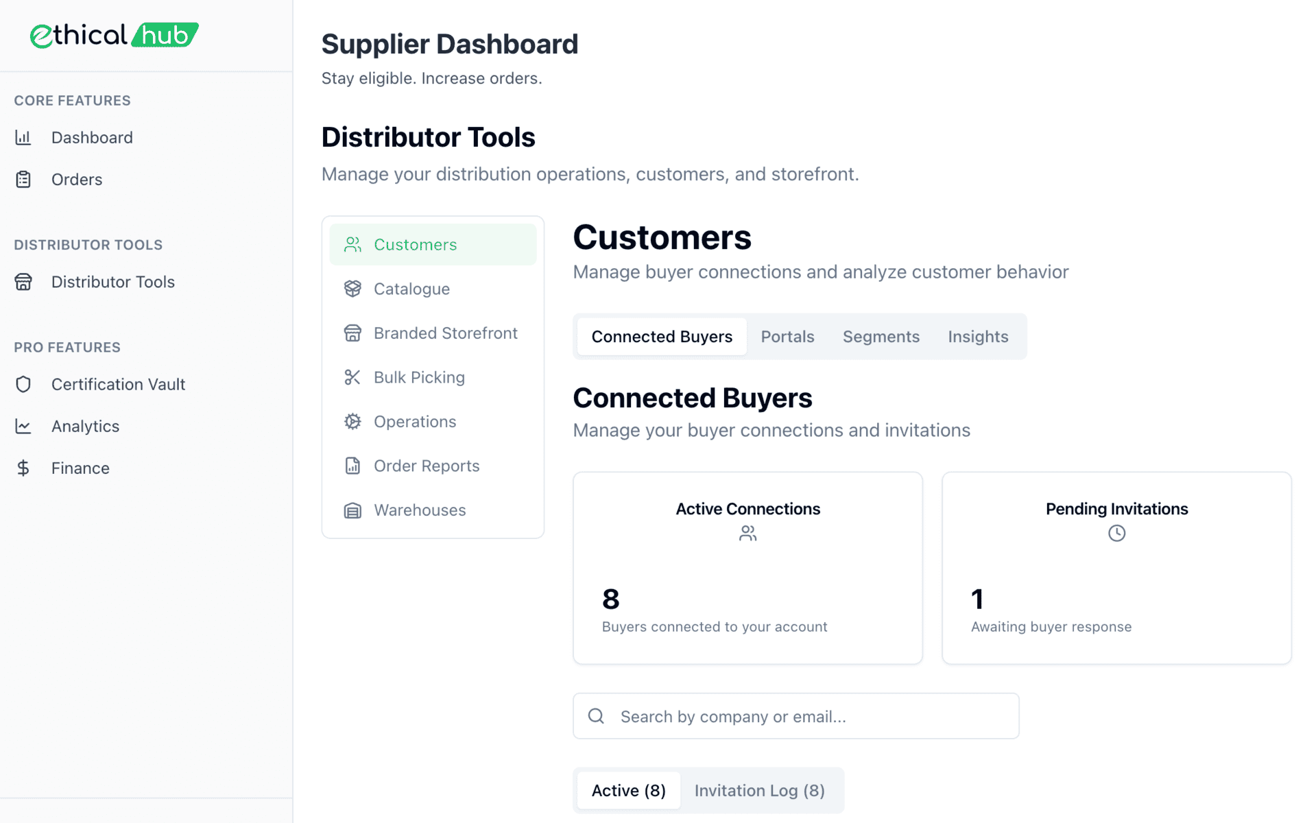 Modern Ordering & Operations Without Replacing Your Business EthicalHub sits between your customers and your warehouse, helping you digitise wholesale ordering, reduce admin complexity, and gain better customer visibility while keeping your pricing, brand, and relationships fully under your control.